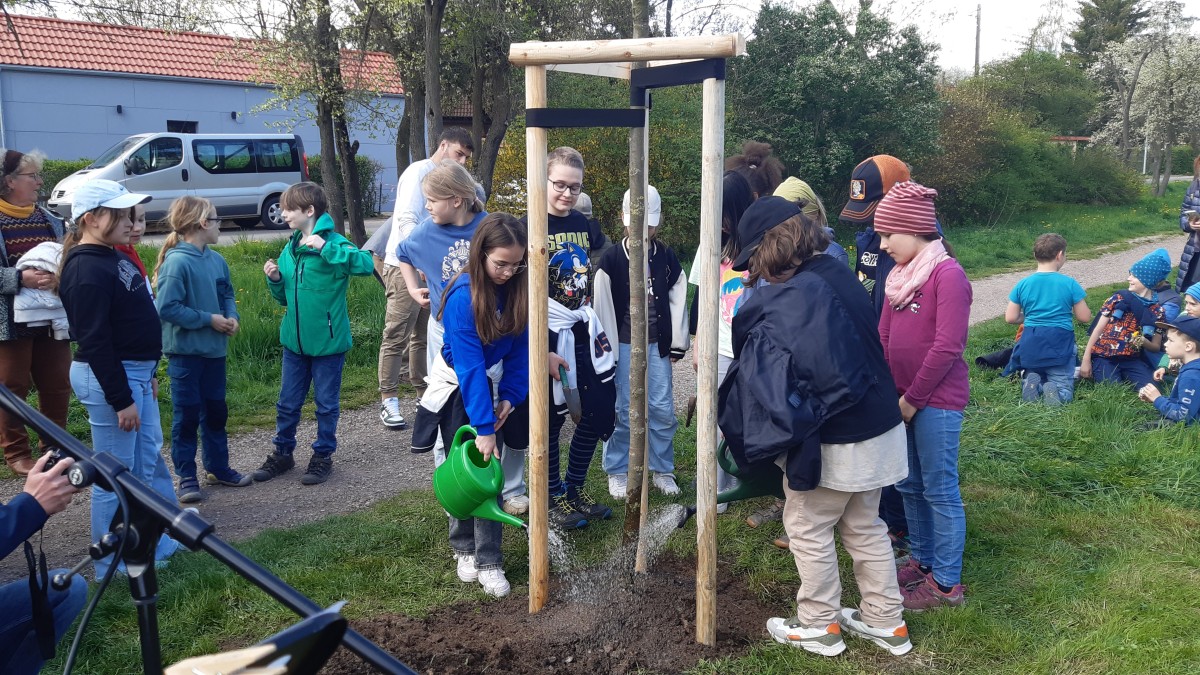 Zu diesem Anlass haben alle Kleinen und Großen unserer Schule heute, am Mittwoch, 10.04.2024 in der Klinge einen Baum gepflanzt.
