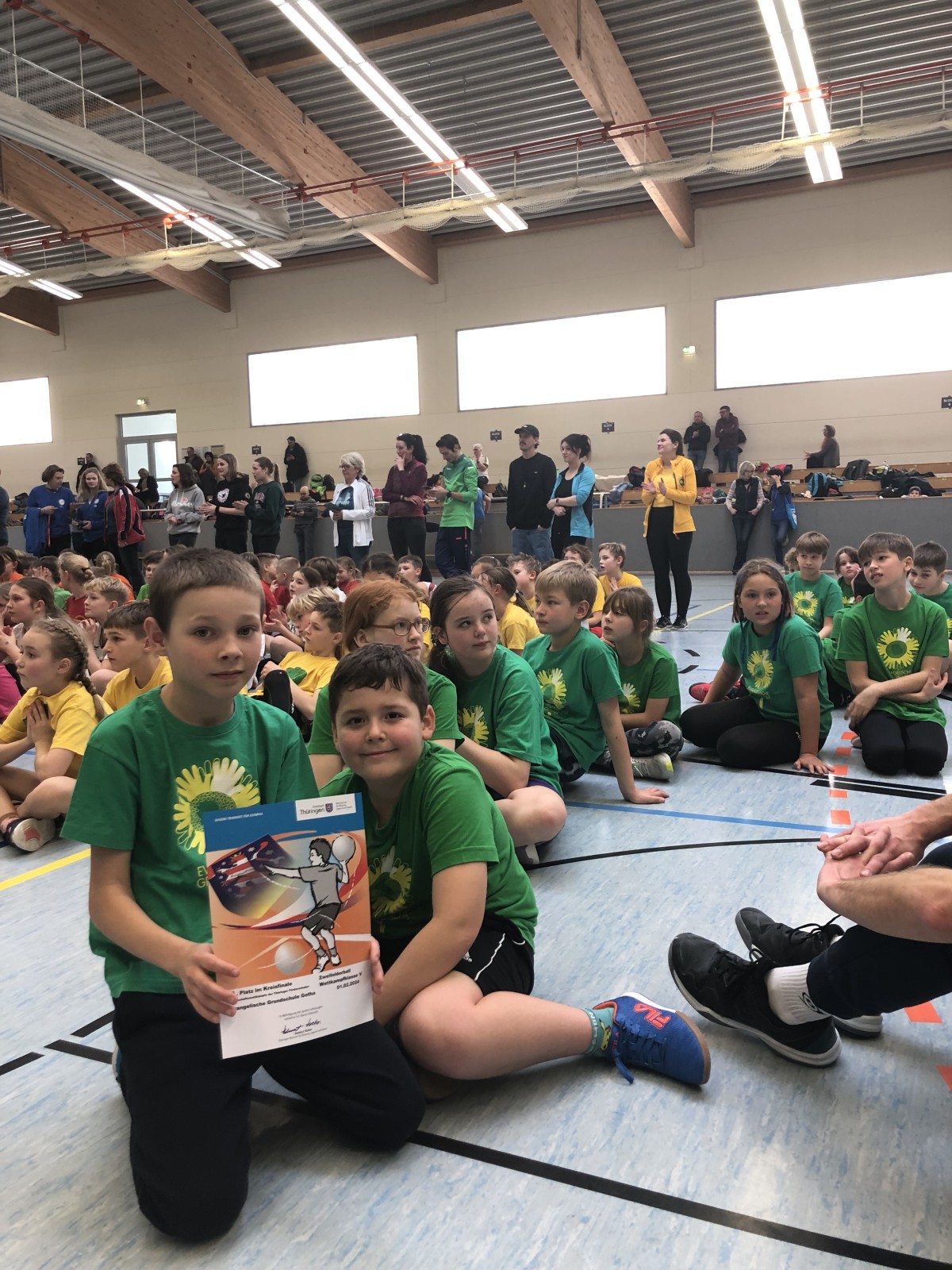Am 01. Februar 2024 fand in der Goldberrghalle in Goldbach das Zweifelderball-Turnier des Landkreises Gotha statt. 21 Grundschulen nahmen daran teil. Unsere dafür zusammengestellte Manschaft hat gekämpft und motiviert mitgezogen und hat den 19 Platz erreicht. Herzlichen Glückwunsch!